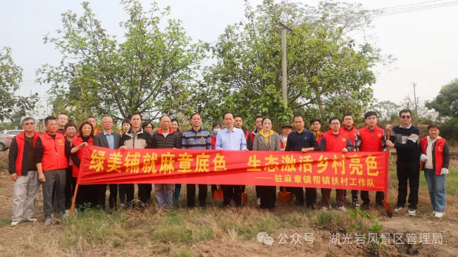 为深入贯彻党的二十大及二十届一中、二中、三中全会精神,积极响应省委、省政府"百千万工程"及绿美广东生态建设战略部署,根据《2025年全省乡村绿化主题植树活动实施方案》要求,3月19日上午,湛江市湖光岩风景区管理局党组书记、局长陆明贤率队到麻章镇古河村开展“绿美铺就麻章底色,生态激活乡村亮色”为主题的乡村植树活动,以实际行助力乡村振兴与生态建设深度融合。党组成员、副局长王少兰,党组成员、副局长李团基,市湖光岩风景区管理中心相关党员干部、市三岭山森林公园管理处相关党员干部、麻章镇驻镇帮镇扶村工作队队员、古河村干部及志愿者等共同参与本次活动。