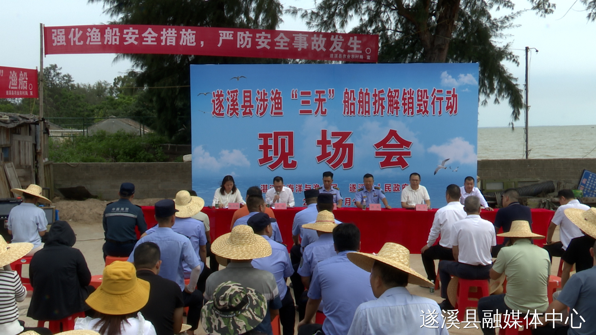 7月10日下午,遂溪县在草潭镇召开涉渔“三无”船舶集中拆解现场会,深入贯彻习近平总书记关于安全生产的重要指示精神,严格落实省市县关于清理整治涉渔“三无”船舶的决策部署,切实维护全县渔业生产秩序和海上安全稳定。