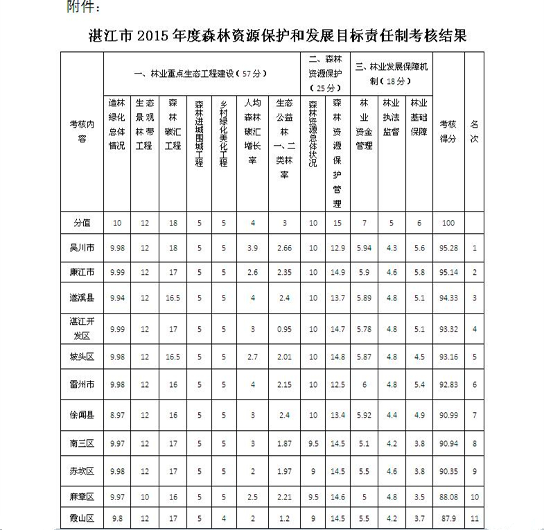 附件:湛江市2015年度森林资源保护和发展目标责任制考核结果