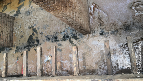 集水池作业环境性质。事发捞浆斜网下方的集水池四周封闭,只在西南角留出一个1.6×1.1米的门洞,作为污水排放口和入池通道,上部全部由铺设满布的斜网(污水顺斜网流下时,形成水膜密封面),池内均布支撑污水渠、渣浆沟的砖砌立柱(如图8、图9所示);正常运营时,排放口形成0.3-0.4米深的水流,人员可以进入,但须跨越水沟围堰并蹚水从排放口进入;正常运行时,集水池内部不是工作场所(科晶公司口头要求人员不能进入),只是在污泥累积到有必要清理时才进入的临时性工作。对照59号令对有限空间的定义[],及应急厅函〔2020〕299号文件关于有限空间特点的说明[],认定捞浆斜网下方的集水池为有限空间。