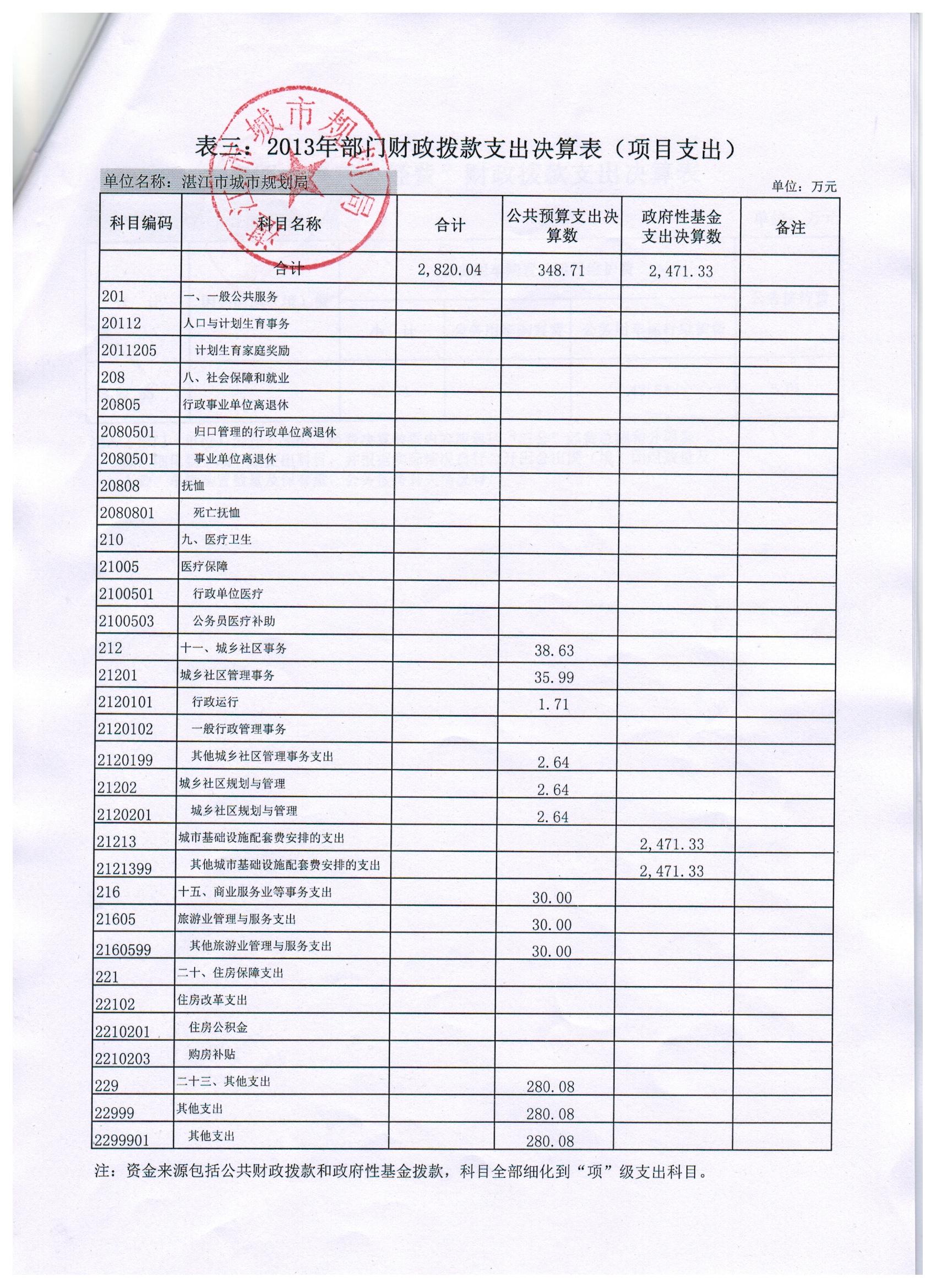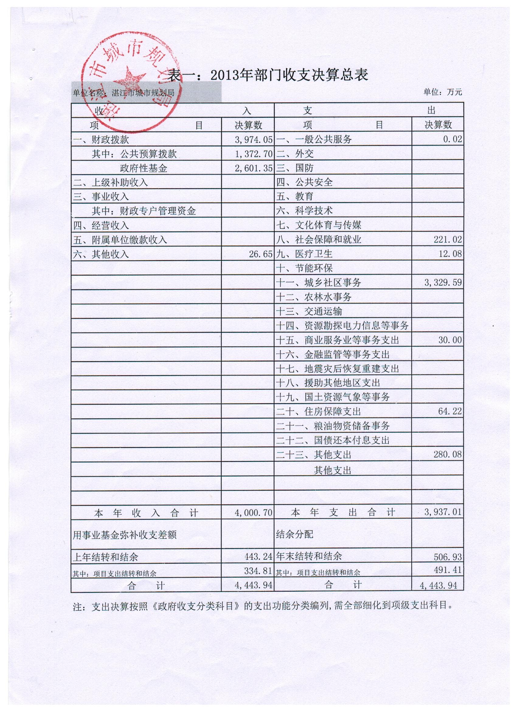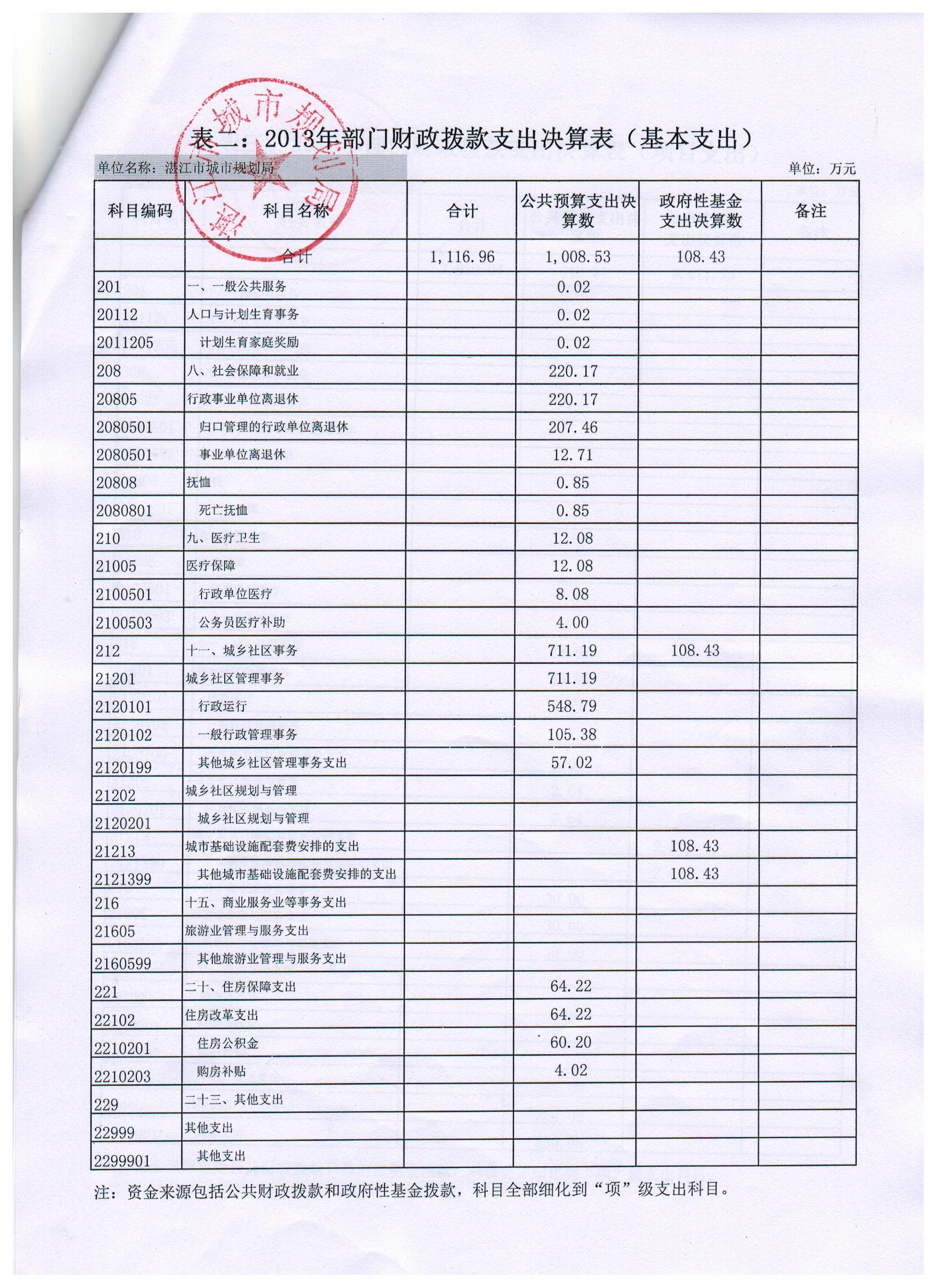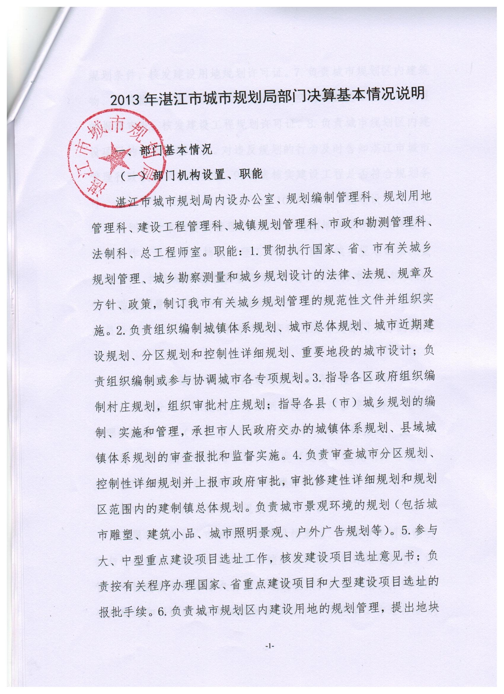 湛江市城市规划局2013年部门收支决算及基本情况说明