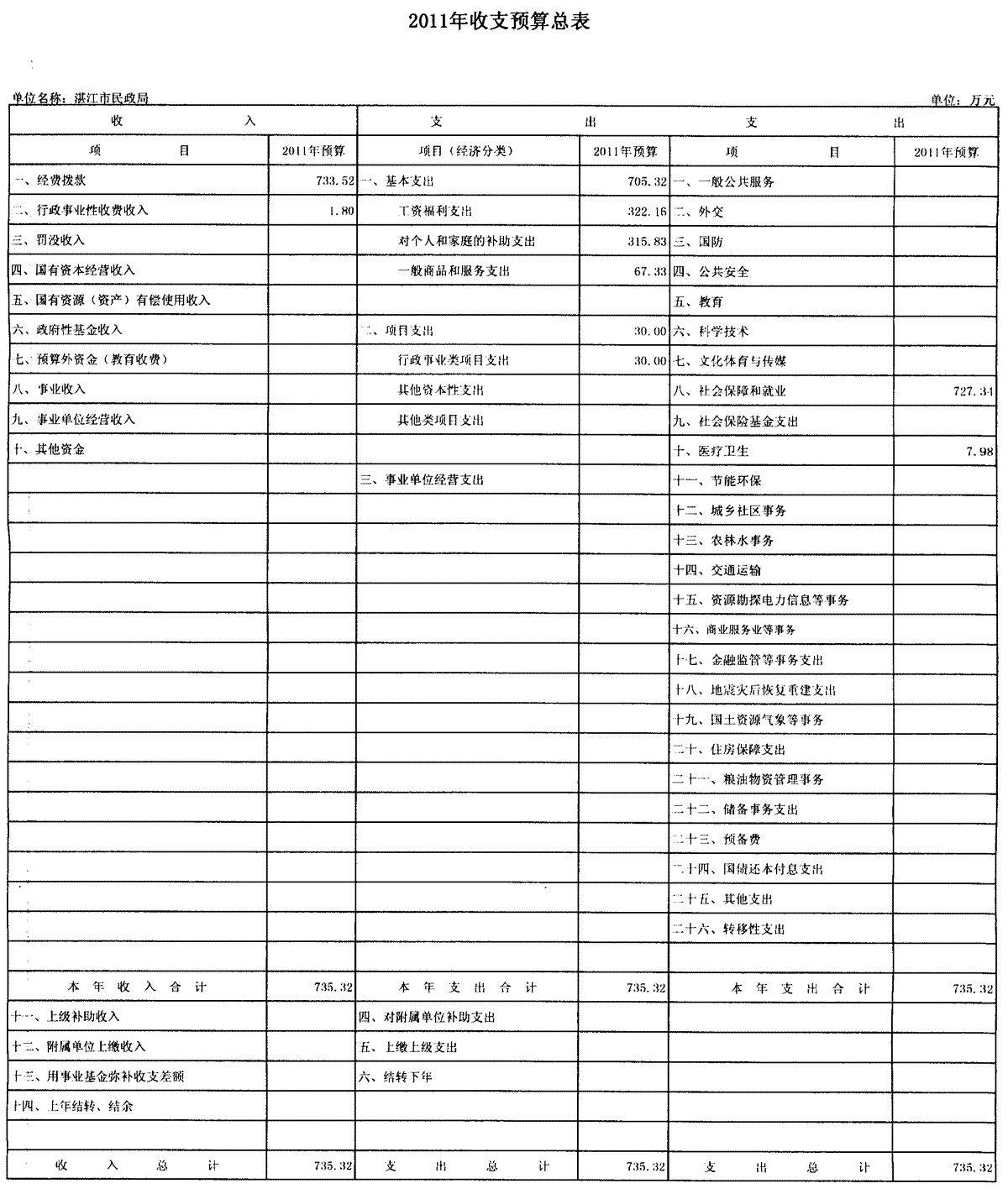 2011财政预算