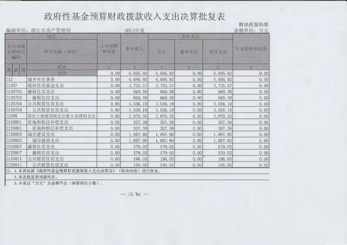 2013年政府性基金预算财政拨款收入支出决算批复表