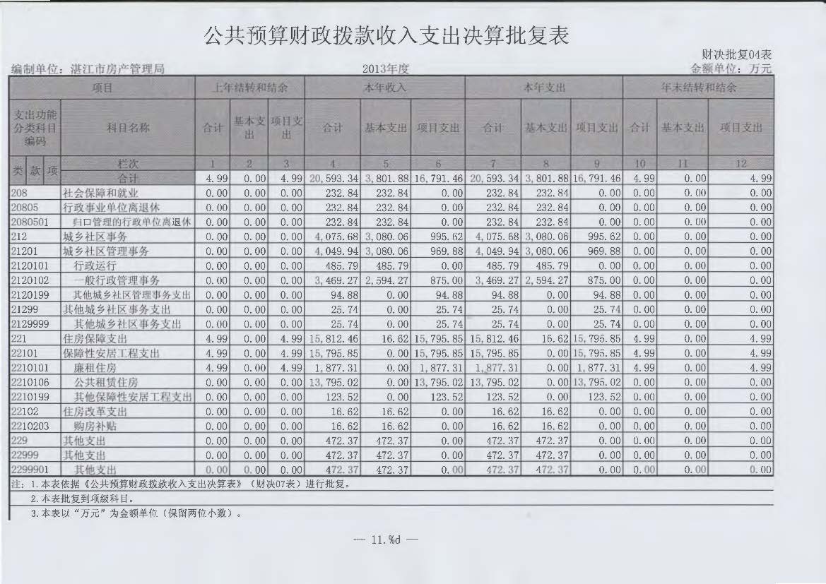 2013年公共预算财政拨款收入支出决算批复表
