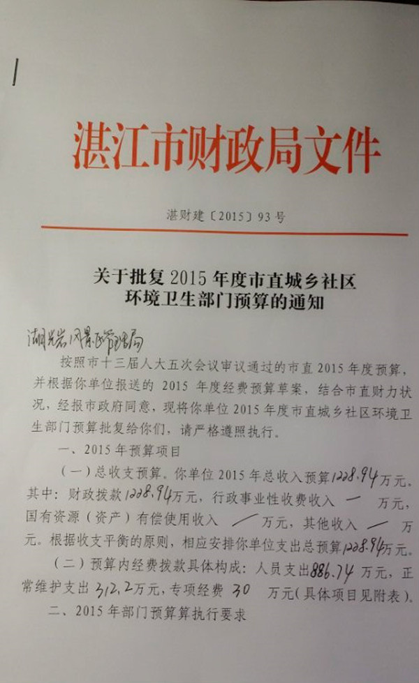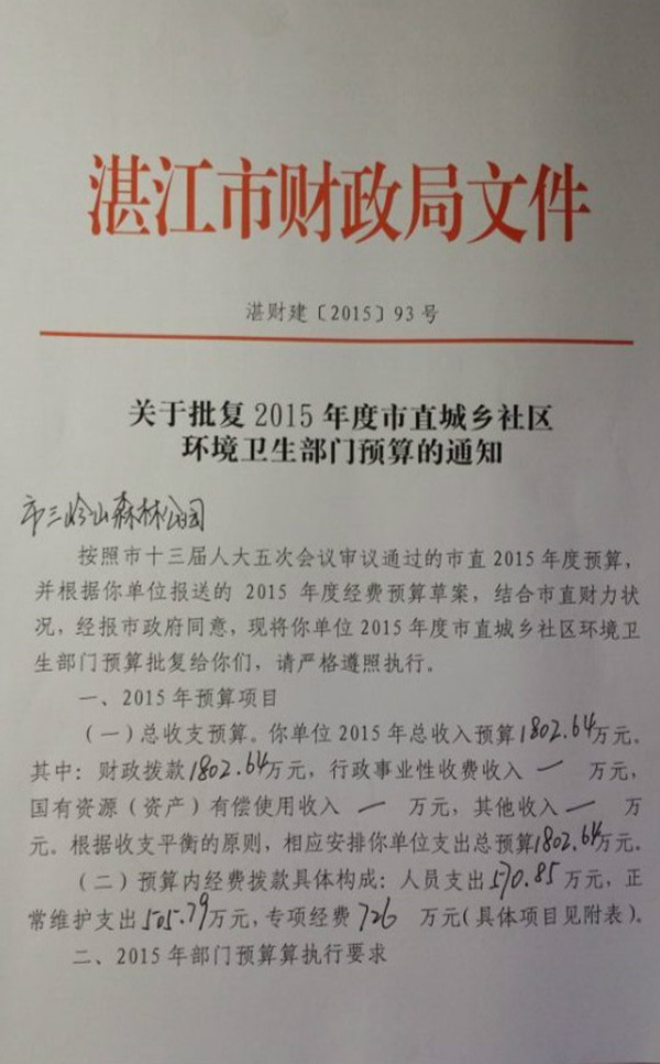 湖光岩风景区管理局2015年度预算