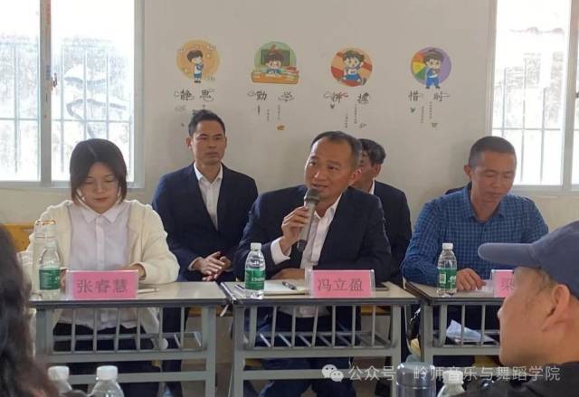 冯立盈在致辞中介绍了赤岭小学迈合校区在硬件建设和教师队伍建设方面取得的成绩,对岭南师范学院师生的到来表示热烈欢迎和衷心感谢。他认为,此次合作将为学校带来强有力的师资力量和新的教学理念,推动学生全面发展,提高学生们的审美情趣。