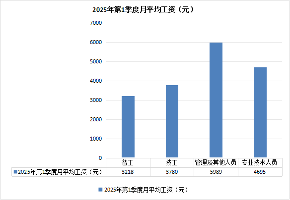 (四)薪酬待遇:2025年第1季度,普工月平均工资3218元技工月平均工资3780元,管理及其他人员月平均工资5989元,专业技术人员月平均工资4695元。