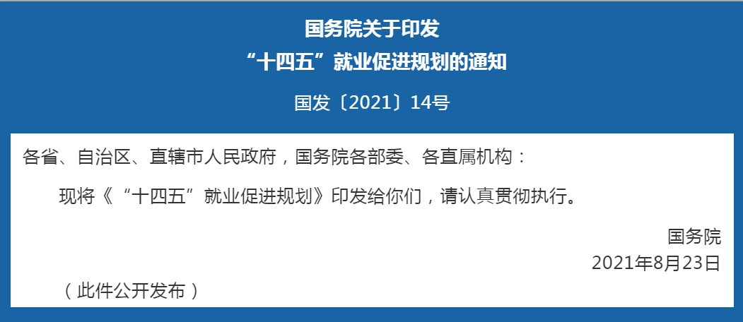 国务院日前印发《“十四五”就业促进规划》(以下简称《规划》)。