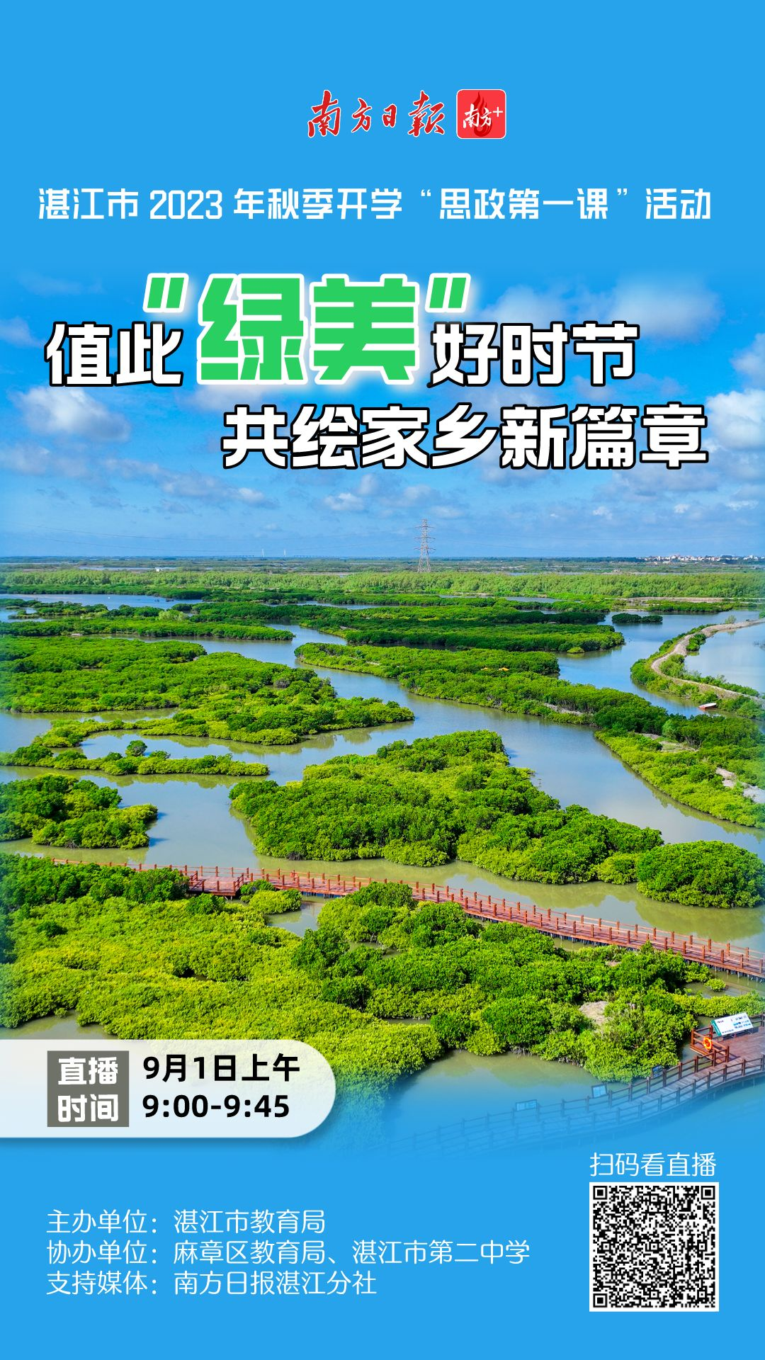 为更好引导学生健康成长,帮助学生扣好人生第一粒扣子,湛江市教育局联动南方+湛江频道为中小学生带来了湛江市2023年秋季开学“思政第一课”,活动直播将于9月1日上午9时在南方+湛江频道正式播出,记得准时收看噢!