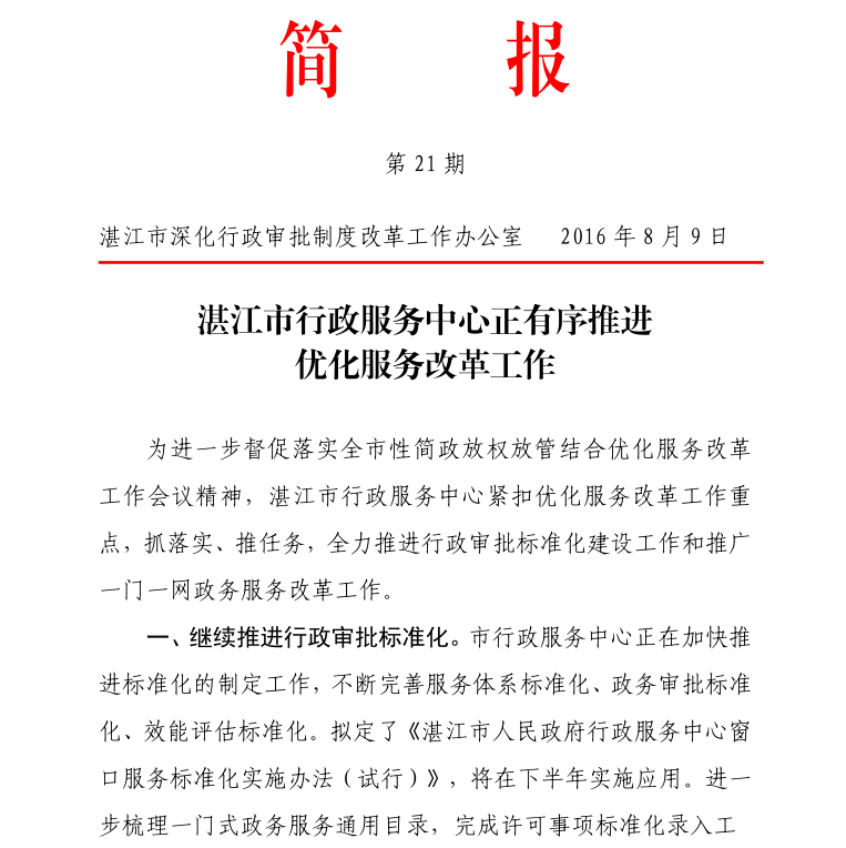 湛江市行政审批制度改革工作简报第21期