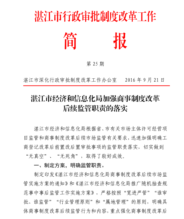 湛江市行政审批制度改革工作简报第二十五期
