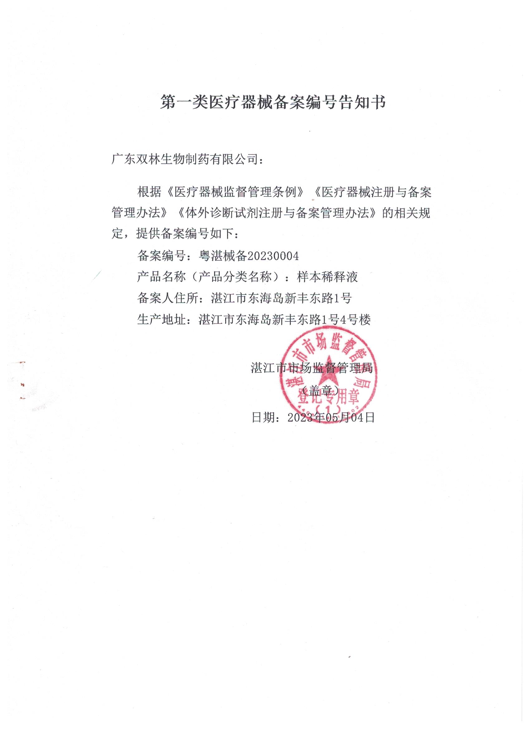 第一类体外诊断试剂备案信息表.jpg 第一类医疗器械备案编号告知书.jpg 第一类医疗器械产品备案公示(20230003).xls