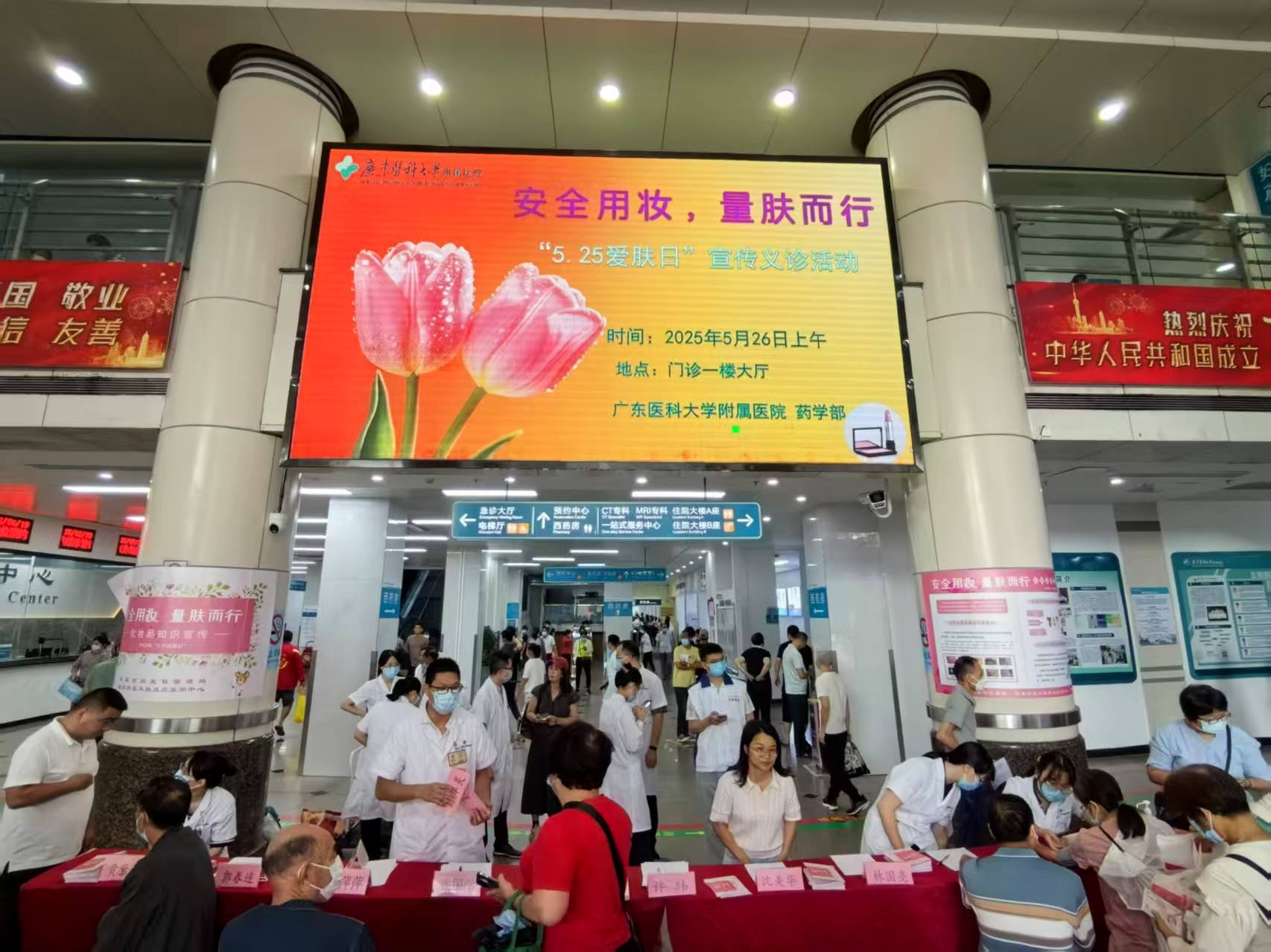 5月25日,湛江市药品不良反应监测中心和广东医科大学附属医院联合以“安全用妆,量肤而行”为主题,在该院门诊大厅举办“5•25爱肤日”化妆品安全监测宣传活动。