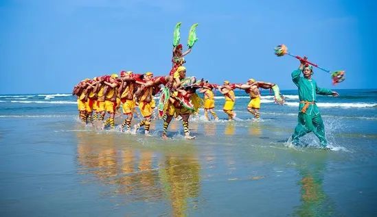 东海人龙舞远望动感迷人,生机无限;近观粗犷有力,威武雄壮,体现出舞龙者注重配合的集体主义精神和聪明才智,特别是在辽阔的浅水沙滩上表演,更能展示了中国“龙”气吞山河的豪迈气魄,具有浓厚的乡土气息和海岛特色。