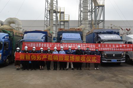 廉江市:3月11日上午,廉江市市场监管局在湛江市粤绿环保科技有限公司开展了一场大规模的侵权假冒伪劣商品公开销毁行动。