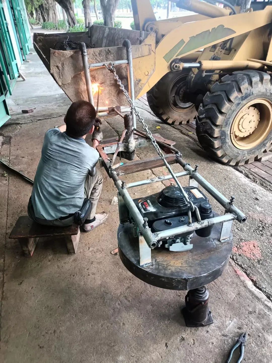 雨水期的公路绿化生长速度很快,特别是中央绿化带的低植被,刚修剪完没几天就又长得参差不齐,十分影响美观。单靠人工背负机械上路修剪,不但耗时耗力,还占道作业时间长,增加职工路上作业风险,同时也影响公路行车安全。综合考虑各种因素和问题,副所长支国伟大胆创新,用心钻研,尝试将养护车与割草机组合一起使用,打破传统的人力操控作业,转变为创新的机械操作,实现自动化割草。改造初期,由于经验不足,几次试验均以失败告终。总结经验后,重新调整策略,做到边设计、边改造、边试用、边改进,最终摸索出最佳的组合搭配。先把功率大小相当的割草机焊接在定制的钢架上,再使用钢链将改造过的割草机与铲车加固整合在一起,通过车辆代替人工去推动割草机作业,同时利用铲车自身特点实现割草机的自由升降。经过后期的优化升级,投入使用的组合型割草机更加便捷、灵活,割草效果也更加精准、高效,切实做到安全、效率双提升。