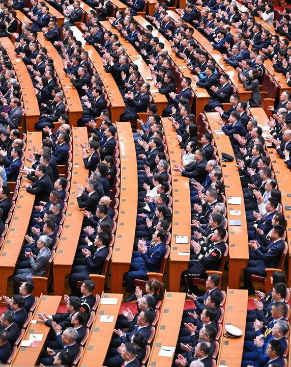 4月28日上午,庆祝中华全国总工会成立100周年暨全国劳动模范和先进工作者表彰大会在北京人民大会堂隆重举行。新华社记者 岳月伟 摄