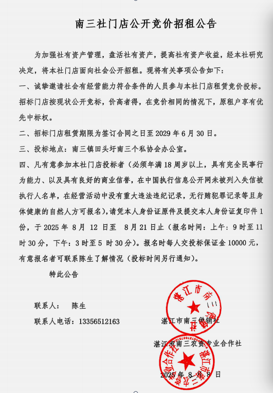 门店(仓库)公开竞价招租公告