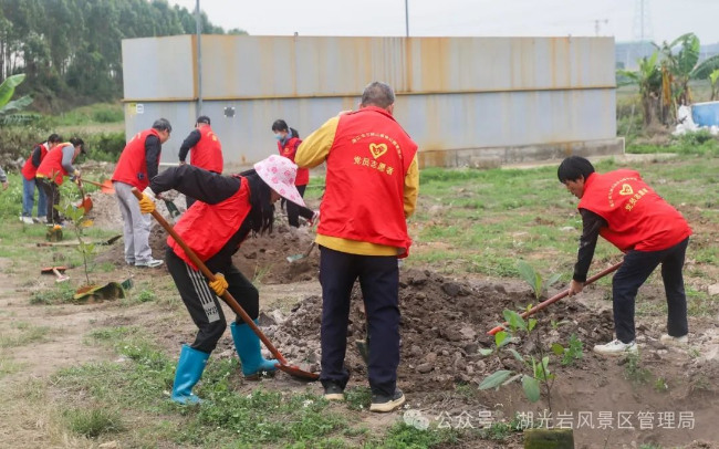 春染新绿绘乡景 携手共植振兴林|市湖光岩风景区管理局赴麻章镇古河村开展绿美乡村植树行动