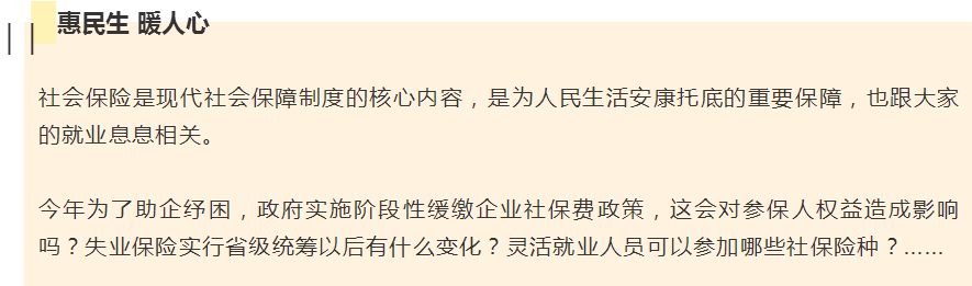近年来,灵活就业、新就业形态不断涌现,为更好保障大家的权益,我省陆续出台了灵活就业人员参加企业养老保险、失业保险和超过法定退休年龄等八类人员参加工伤保险办法,同时我省也是职业伤害保障试点地区。