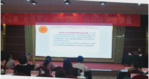 为贯彻落实国务院、省和市推动六稳”、落实“六保”的决策部署,进一步推动保就业、保民生系列政策措施落实到位,帮助企业和劳动者有效应对疫情风险、共渡难关,2020年7月24日,湛江市人力资源和社会保障局举办“社保惠企 就业暖民”政策宣讲活动。