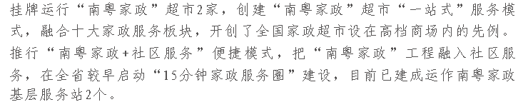 通过“南粤家政”超市、“南粤家政+社区服务”等创新模式,真正解决了“一老一小”问题,满足了群众“在家门口、商场里随心找、放心找”的家政服务新需求。