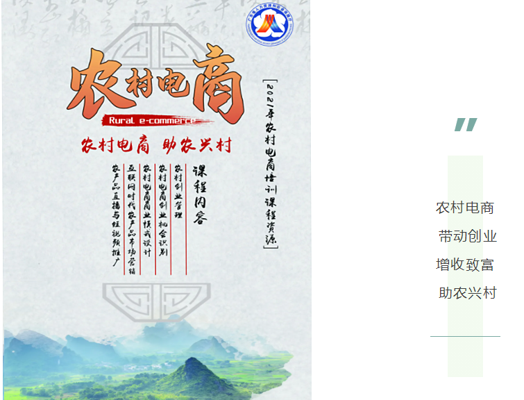2021年“农村电商”培训课程资源以提升农村电商创业就业能力为主线,围绕农村电商“一村一品”运营管理和创业企业管理进行开发,分为农村创业管理、农村电商创业机会识别、农村电商商业模式设计、互联网时代农产品市场营销、农产品直播与短视频推广5大模块,旨在激发农村电商行业从业人员的创新意识,全方位、多层次提升初创者的经营管理能力。
