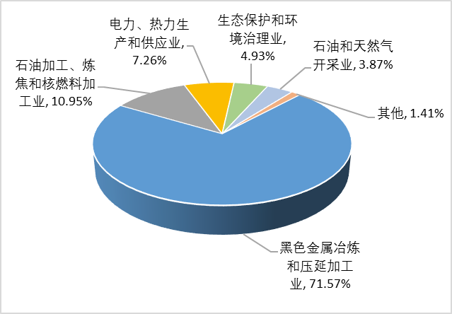 2024年,一般工业固体废物产生量排名前5的行业依次为黑色金属冶炼和压延加工业、电力、热力生产和供应业、农副食品加工业、造纸和纸制品业、石油加工、炼焦和核燃料加工业,分别占全市一般工业固体废物产生量的68.36%、15.34%、4.94%、3.43%、3.29%,详细情况见图 1。