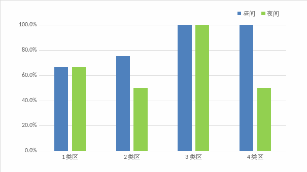2020年第四季度全市15个功能区声环境监测达标率分别为:1类区昼间为66.7%,夜间为66.7%;2类区昼间为75.0%,夜间为50.0%;3类区昼间为100%,夜间为100%;4类区昼间为100%,夜间为50.0%。