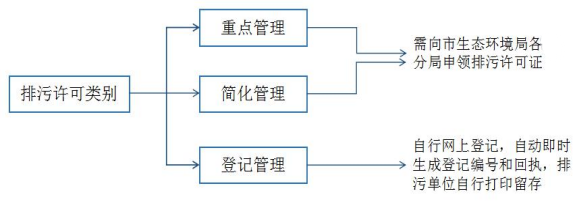 (二)排污许可分类管理。国家根据排污单位污染物产生量、排放量对环境的影响程度等因素,实行排污许可重点管理、简化管理和登记管理。