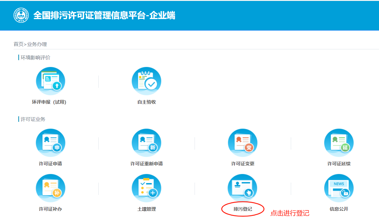 第二步:选择“申请登记”,排污单位如实填报相关登记事项。