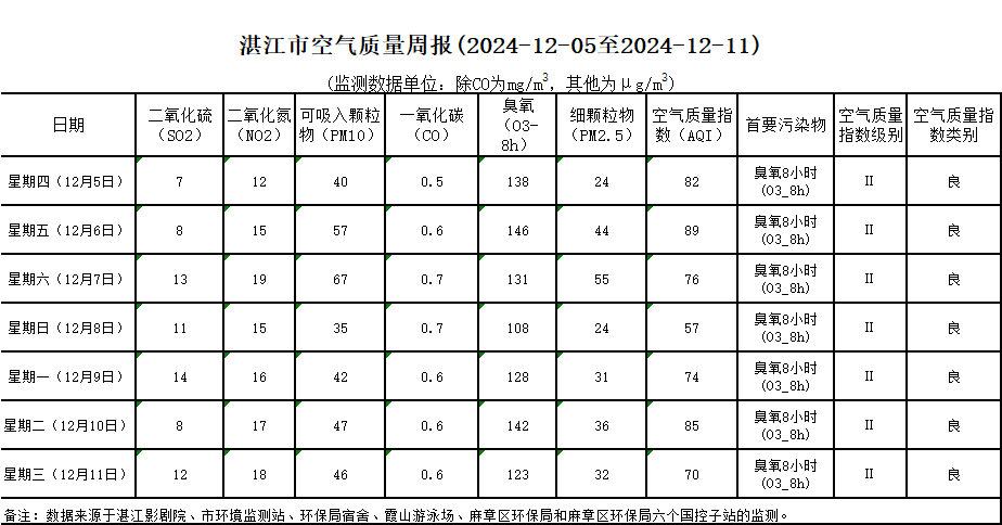湛江市空气质量周报(2024-12-05至2024-12-11)