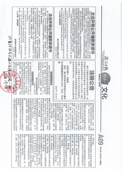 湛江市2022年部分生态环境违法主体登报公开道歉