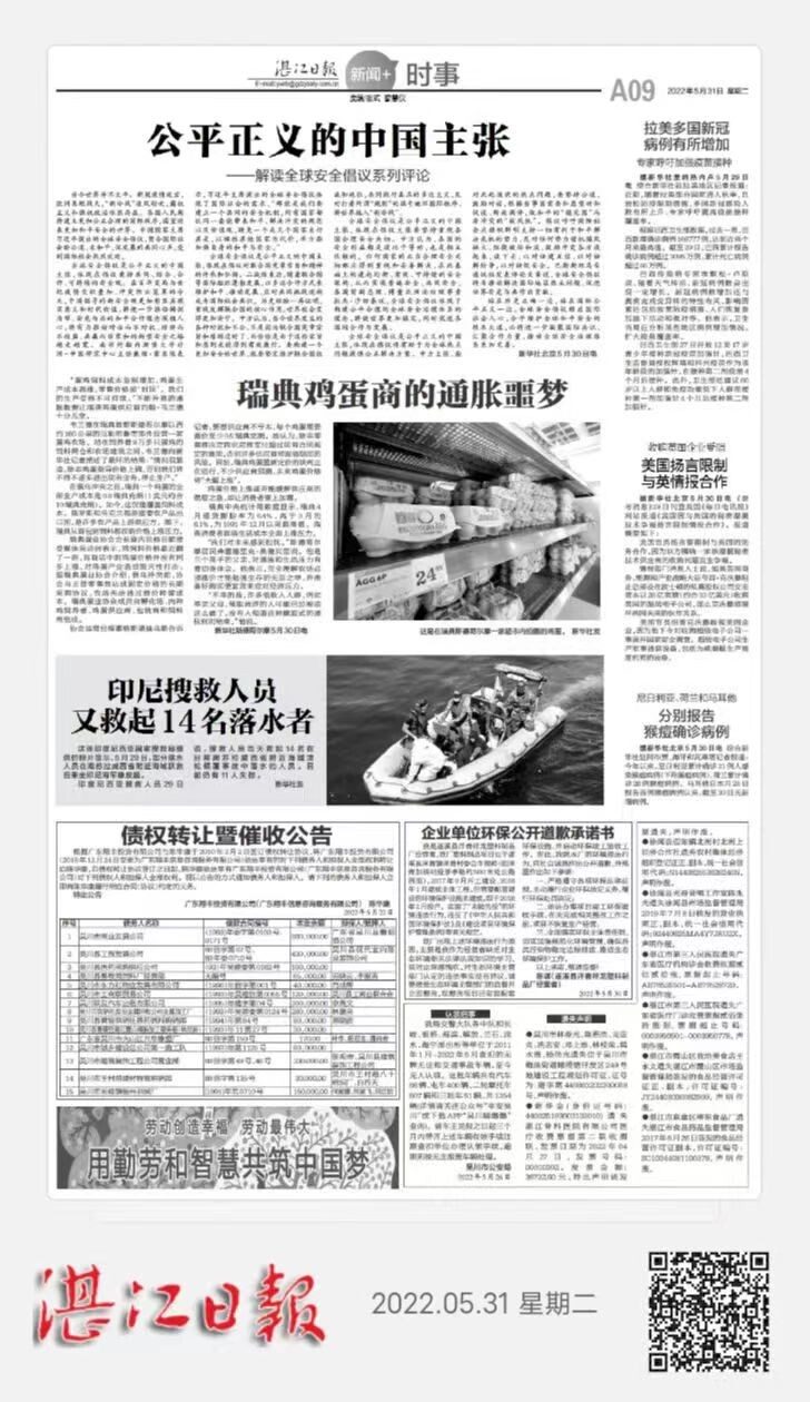 湛江和家宝妇产医院有限公司于2022年9月10日在湛江日报公开道歉并作出守法承诺。