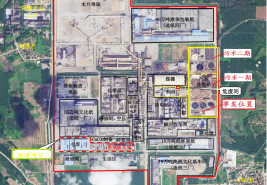 图1 湛江晨鸣公司卫星平面及事发点位置示意图