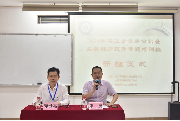 为进一步提升市中心干部职工业务能力,推动各项业务工作高质量发展,结合党史学习教育和湛江市“营商环境整治提升年”活动要求,5月16日至21日,市住房公积金中心在暨南大学举办住房公积金业务能力提升专题培训班。市中心党组书记、主任邓世亮,党组成员、副主任程元好,市中心业务骨干、市纪委监委派驻市住建局纪检监察组同志等50多人参加培训。