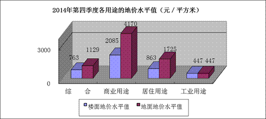 图1-1 2014年第四季度各类用途的地价水平值(元/平方米)