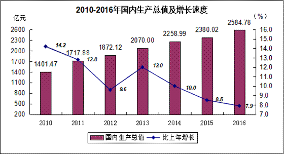 2016年,面对严峻复杂的国际环境和经济下行压力持续加大的国内形势,市委、市政府认真贯彻落实中央和省的各项决策部署,自觉践行五大发展理念,坚持稳中求进发展总基调,主动适应和把握经济发展新常态,坚定不移地推进供给侧结构性改革,全市经济保持平稳健康发展,实现了“十三五”良好开局。