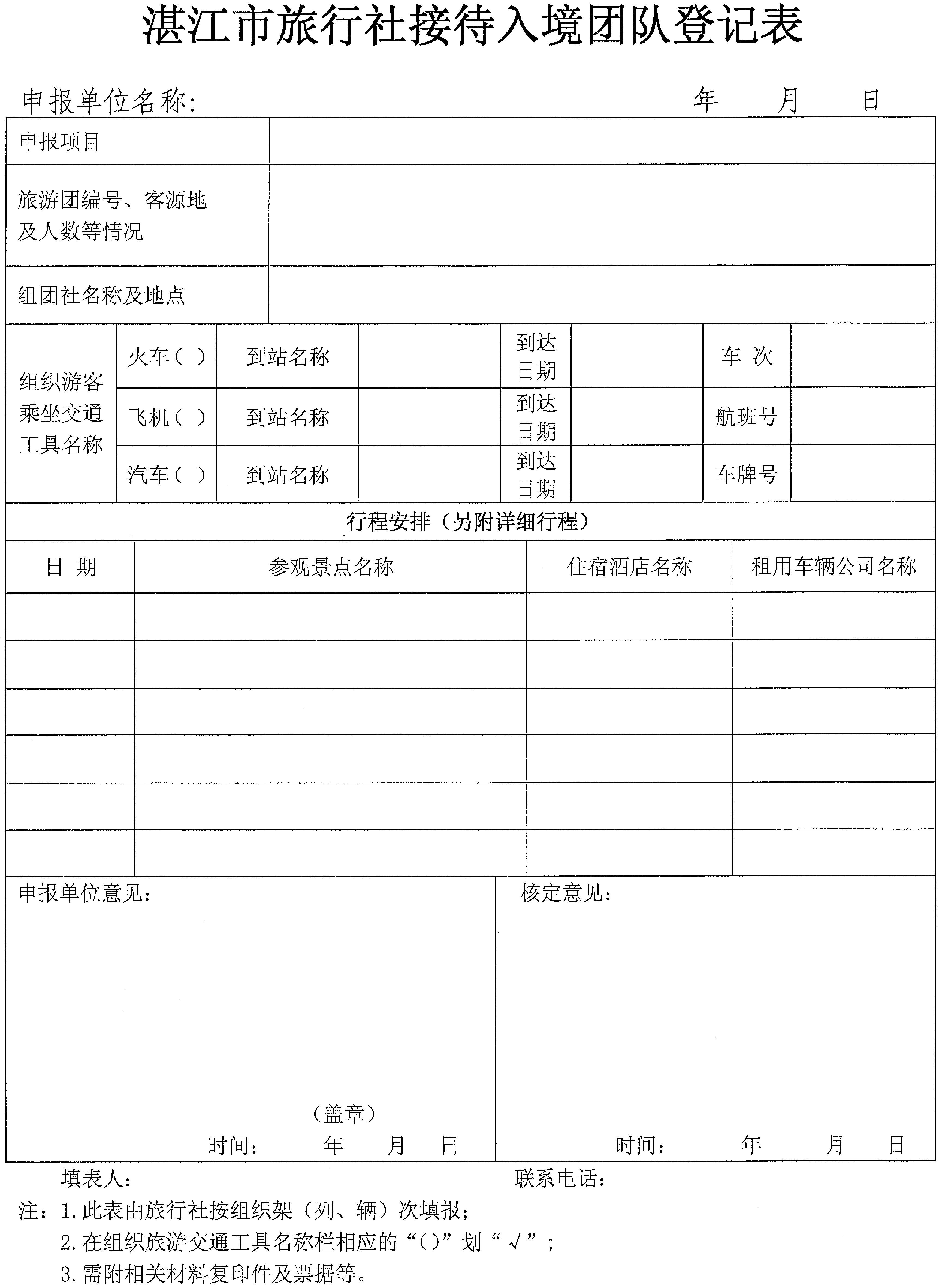 (1)备案。团队到达湛江前3个工作日提交申请资料,须获得湛江市旅游局确认。在团队到达湛江当天应告知湛江市旅游局;