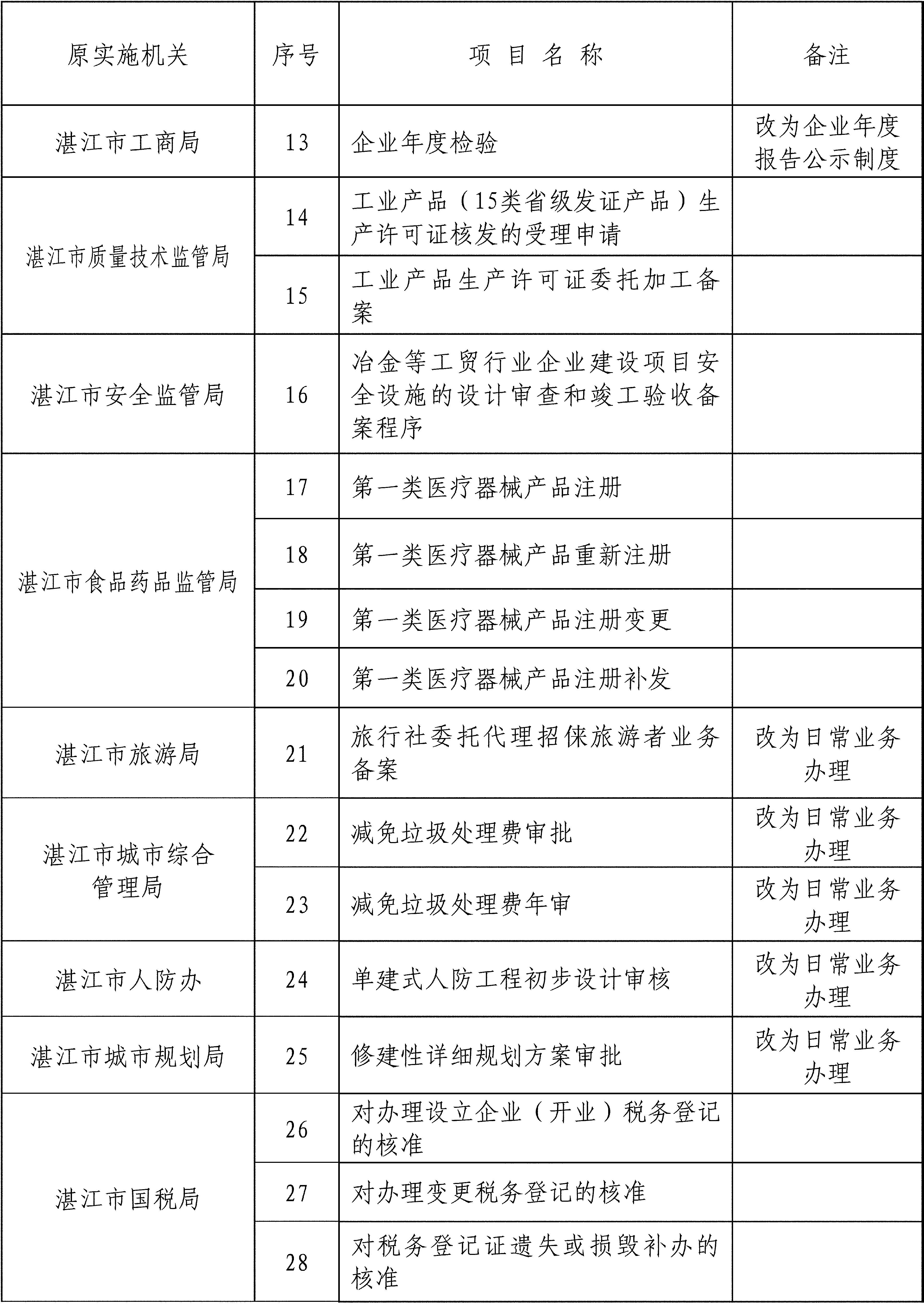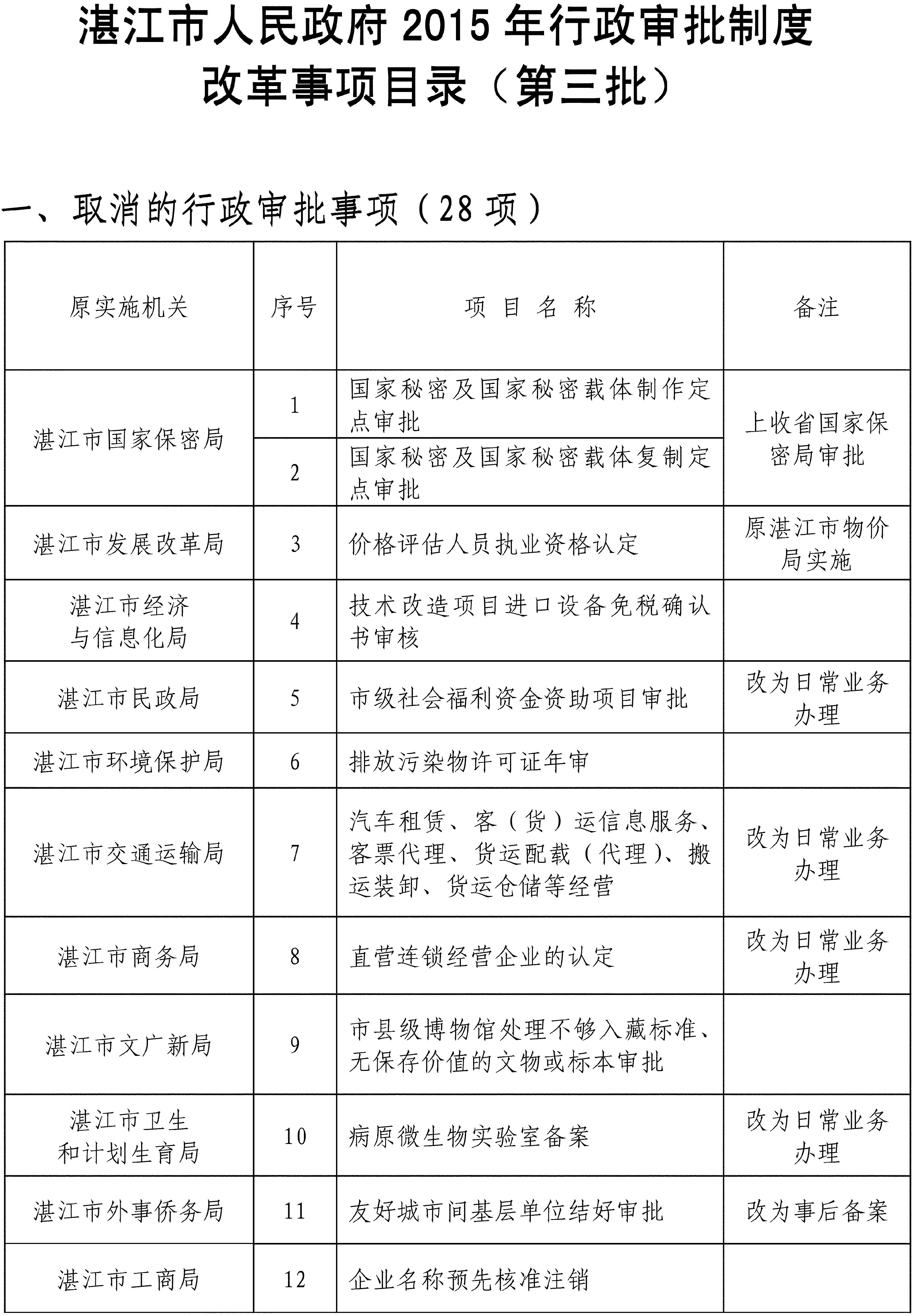 亚洲体育博彩平台关于印发湛江市行政审批事项目录的通知
