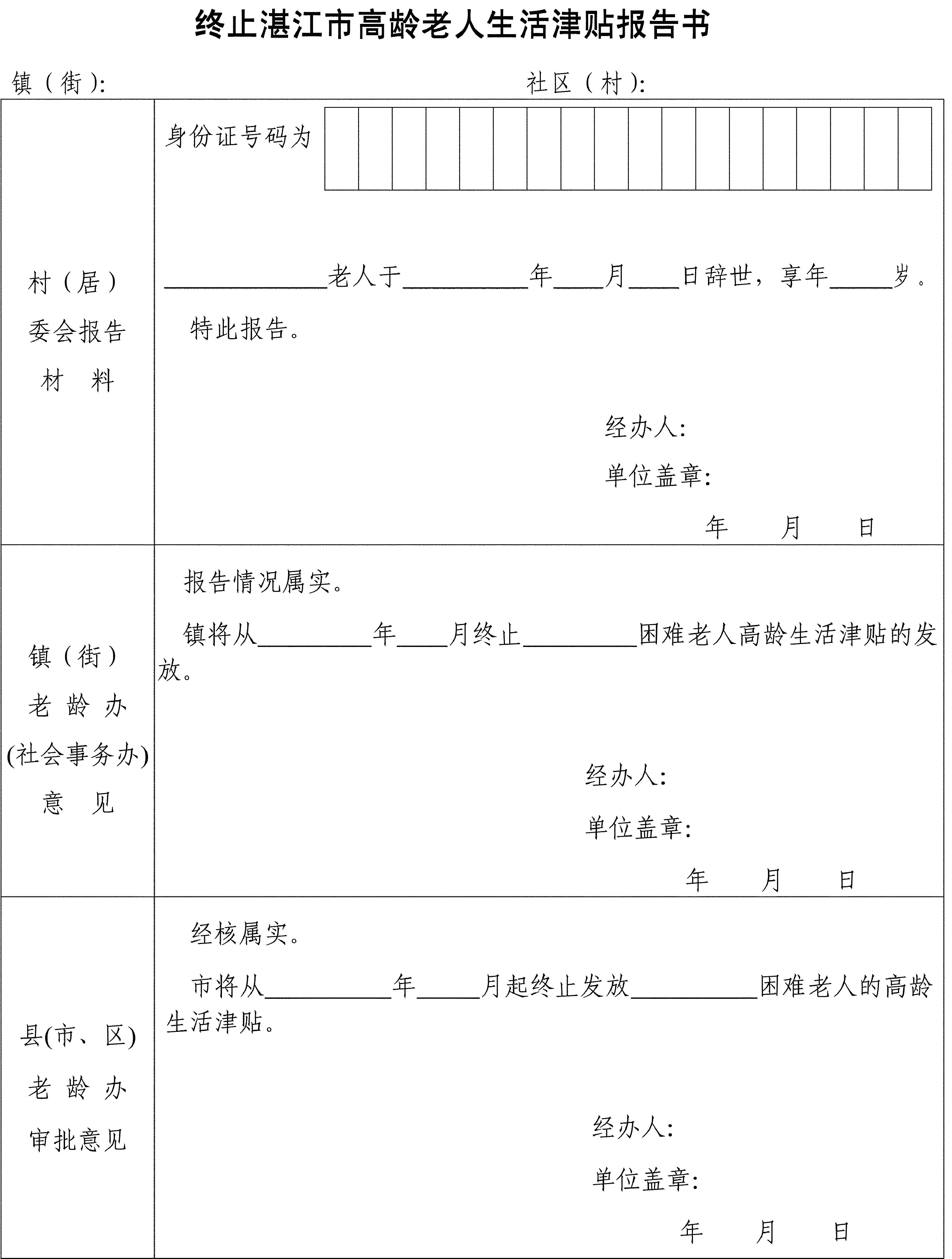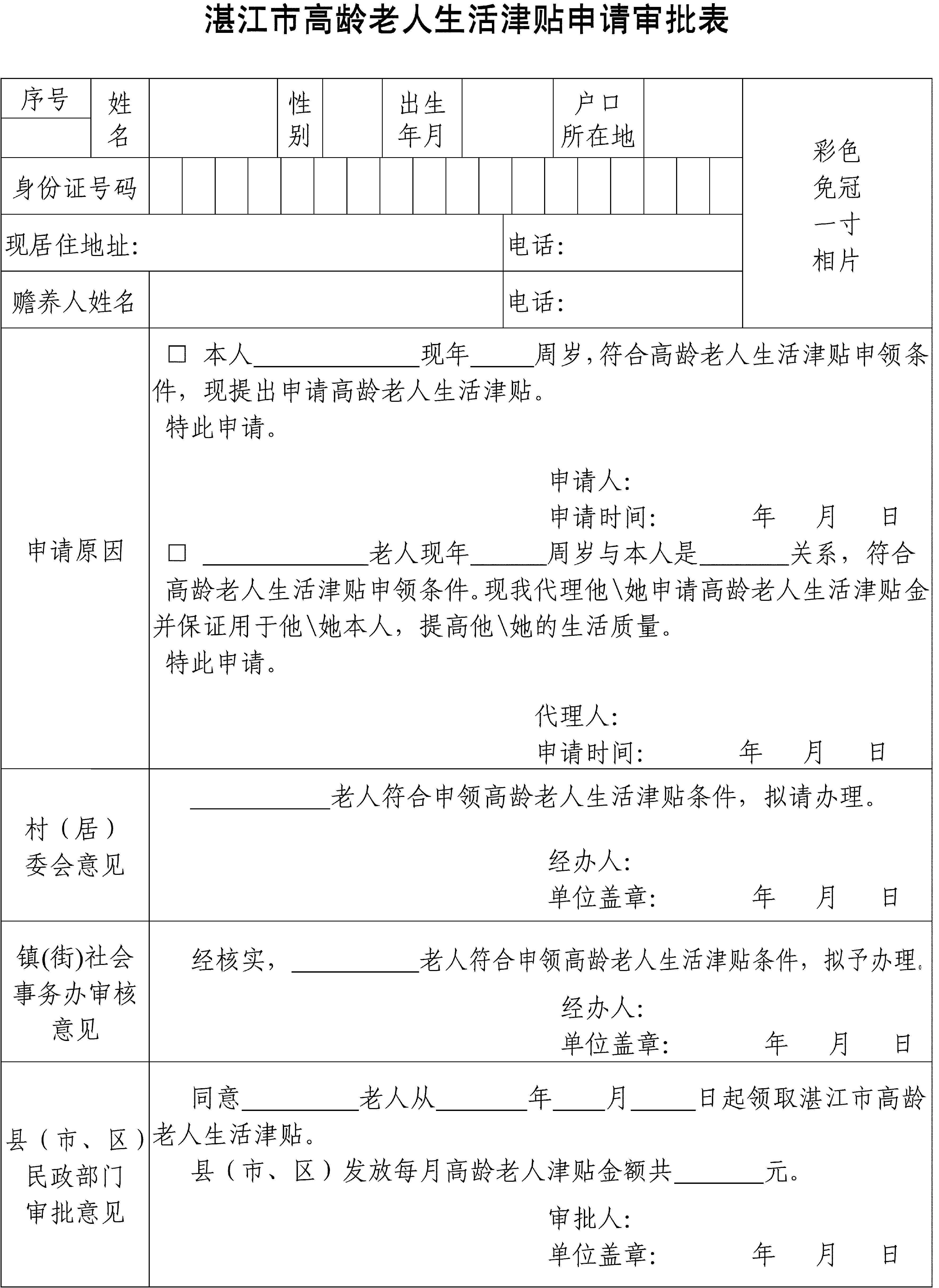 附件:1.湛江市高龄老人生活津贴申请审批表