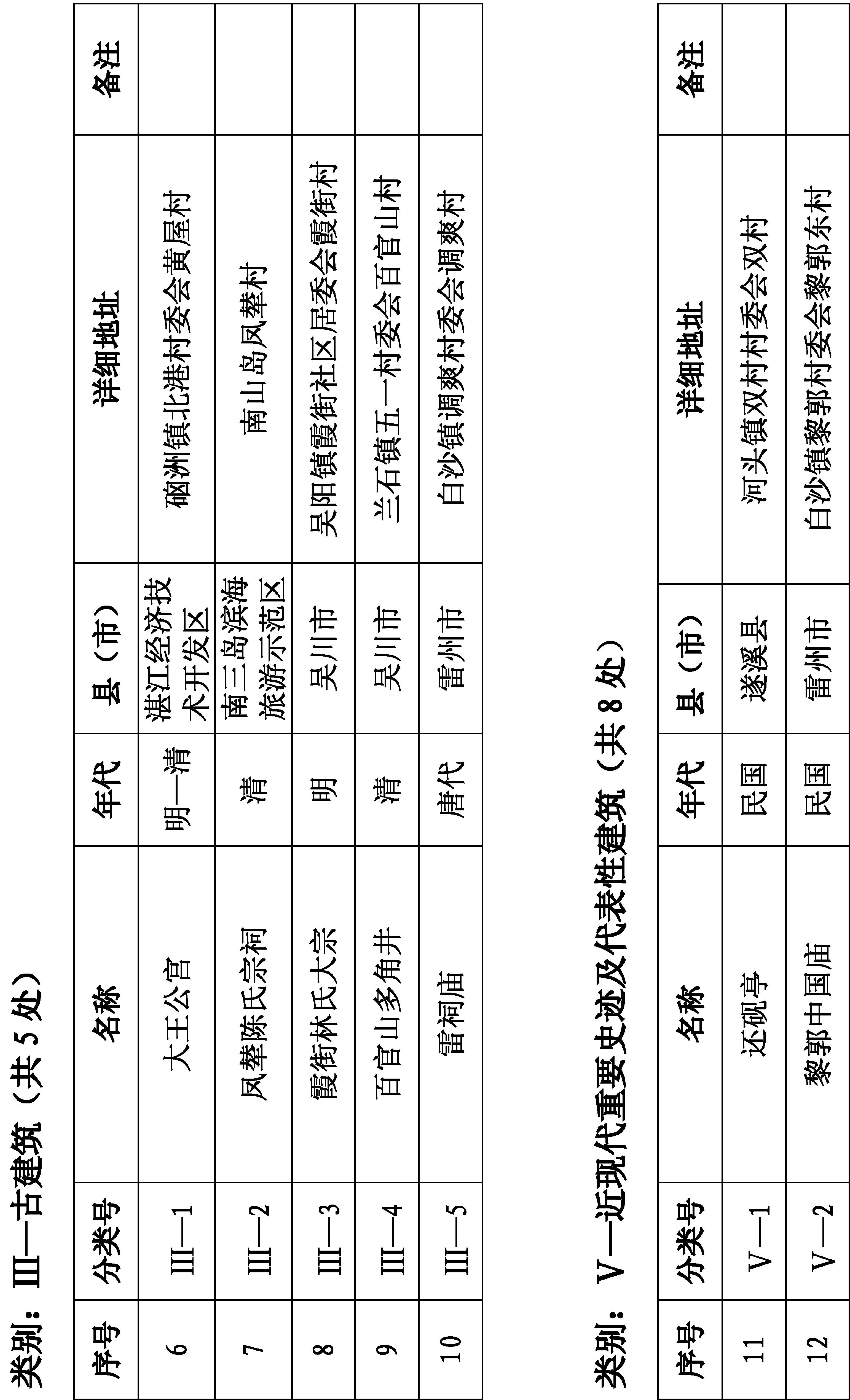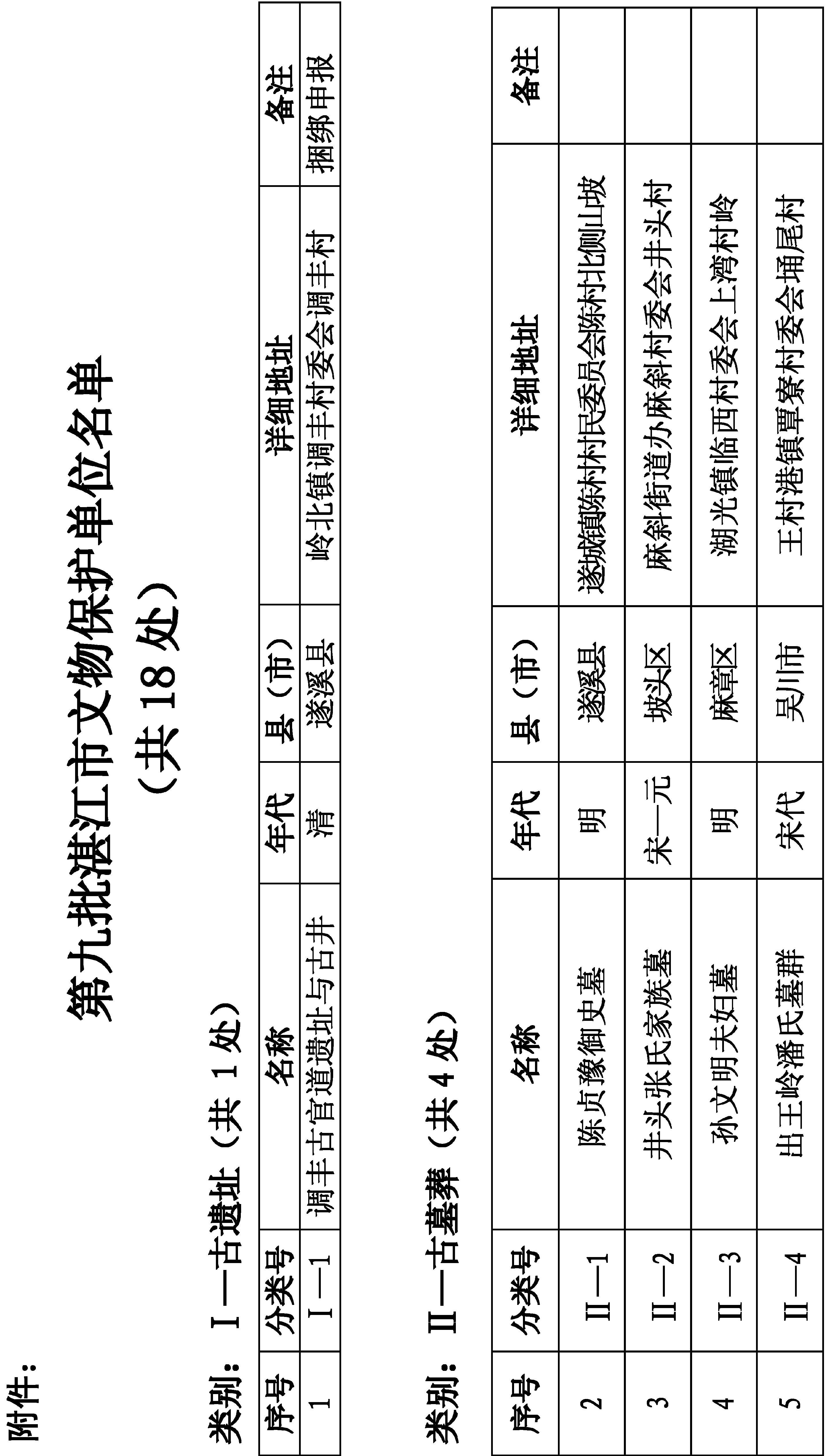 附件:第九批湛江市文物保护单位名单