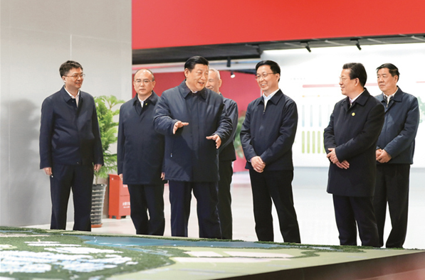2019年1月16日至18日,中共中央总书记、国家主席、中央军委主席习近平在京津冀考察,主持召开京津冀协同发展座谈会并发表重要讲话。这是1月16日上午,习近平在河北雄安新区规划展示中心,仔细听取新区总体规划、政策体系及建设情况介绍。 新华社记者 鞠鹏/摄