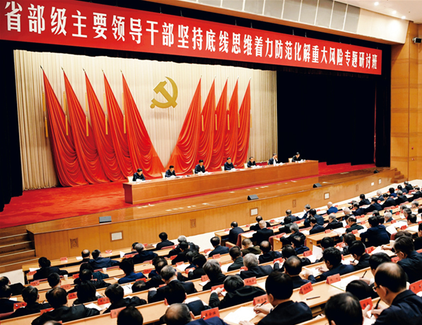 2019年1月21日,省部级主要领导干部坚持底线思维着力防范化解重大风险专题研讨班在中央党校开班。中共中央总书记、国家主席、中央军委主席习近平在开班式上发表重要讲话。 新华社记者 李学仁/摄
