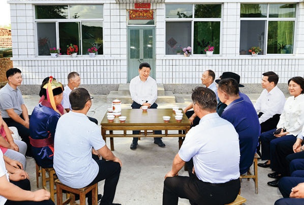 2019年7月15日至16日,中共中央总书记、国家主席、中央军委主席习近平在内蒙古考察并指导开展“不忘初心、牢记使命”主题教育。这是15日下午,习近平在赤峰市喀喇沁旗河南街道马鞍山村村民张国利家,同基层干部群众代表座谈交流。 新华社记者 谢环驰/摄