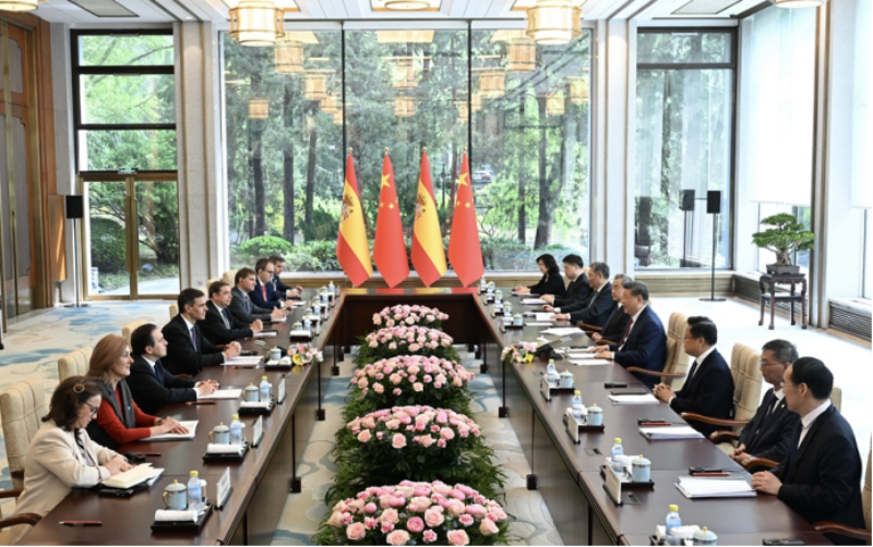 桑切斯表示,西班牙和中国建立全面战略伙伴关系20年来,始终相互尊重、友好合作,两国关系不断深化发展。在习近平主席领导下,中国取得卓越发展成就,为世界繁荣稳定作出重大贡献。西班牙重视对华关系,坚定不移奉行一个中国政策,愿同中方保持高层交往,深化贸易、投资、科技创新、绿色能源等领域互利合作,加强教育、文化、旅游领域交流,推动两国关系迈上新台阶。中国是欧盟重要合作伙伴,西班牙始终支持欧中关系稳定发展。欧方坚持开放自由贸易,致力于维护多边主义,反对单边加征关税。贸易战不会有赢家。面对复杂严峻的国际形势,西班牙和欧盟愿与中方加强沟通协作,维护国际贸易秩序,携手应对气候变化、贫困等挑战,维护国际社会共同利益。